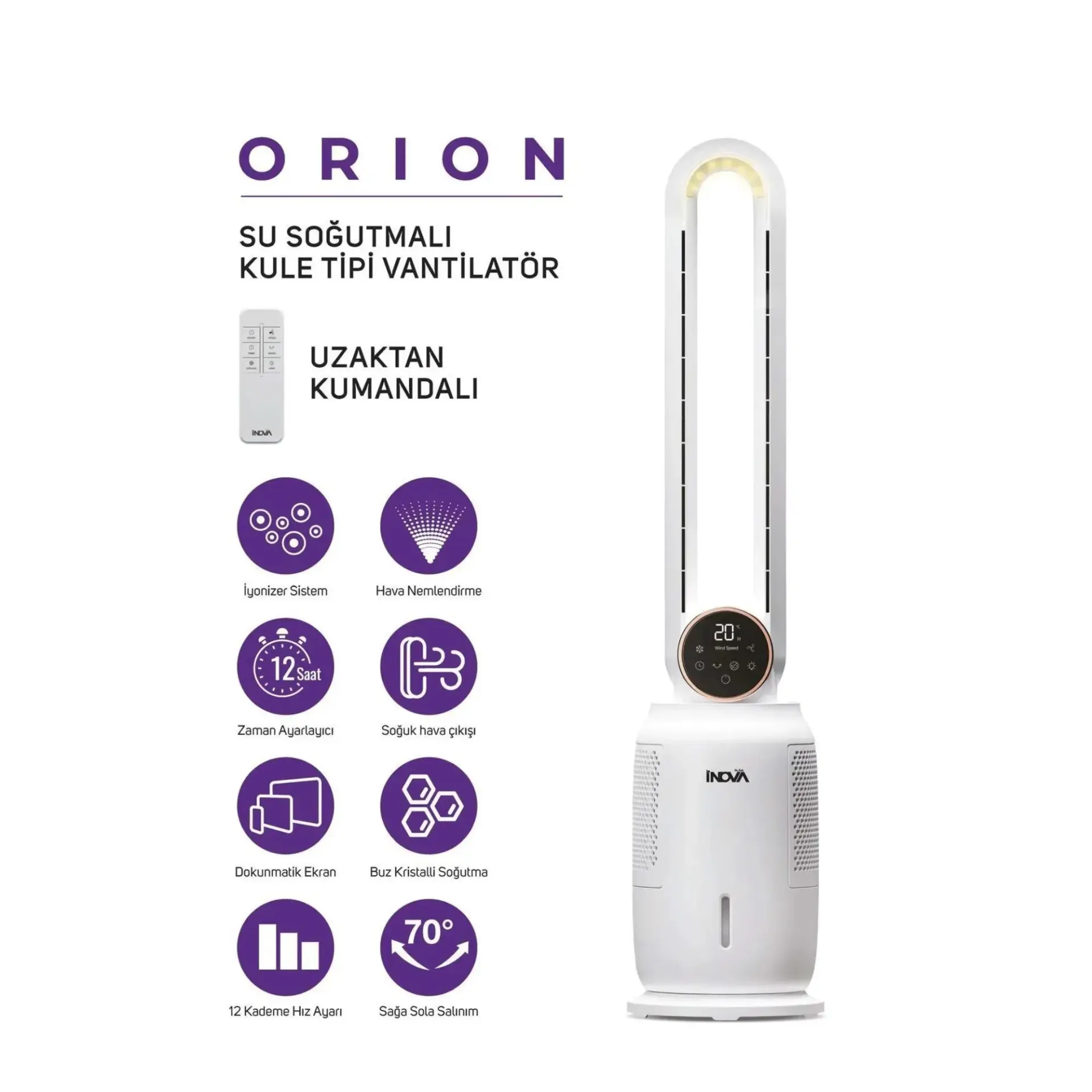 - İNOVA ORİON Kule Tipi Vantilatör, modern tasarımı ve gelişmiş özellikleri ile serinlemek isteyenler için ideal bir çözümdür.
