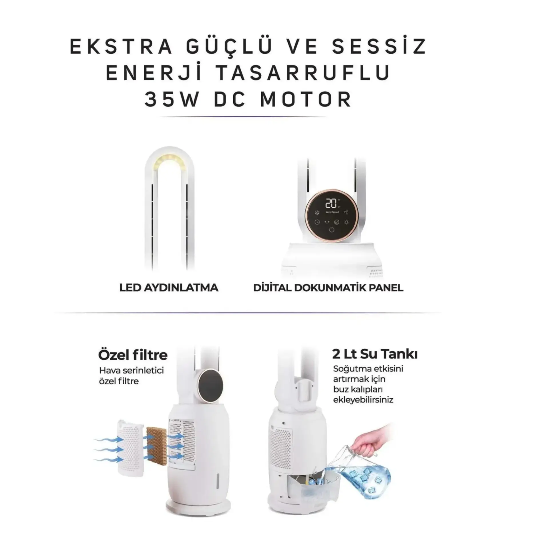 - Oturma odanızı, yatak odanızı veya ofisinizi şık bir şekilde tamamlarken, güçlü hava akışı ile sizi serin ve konforlu tutar.